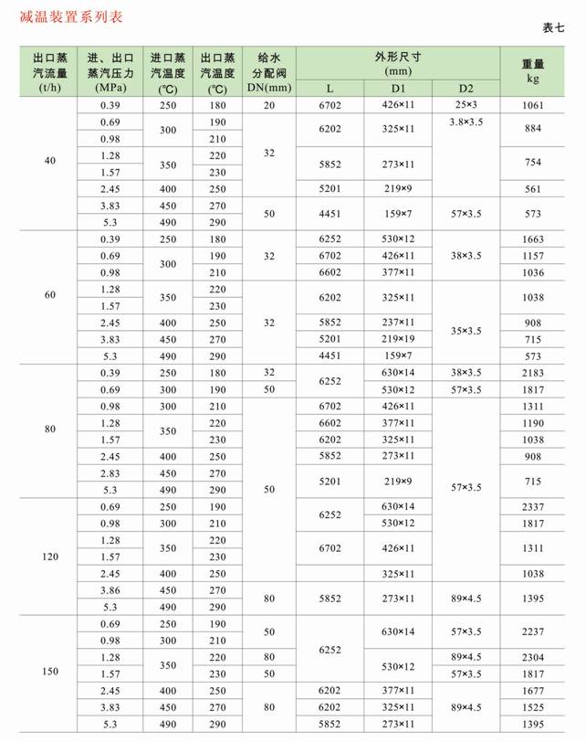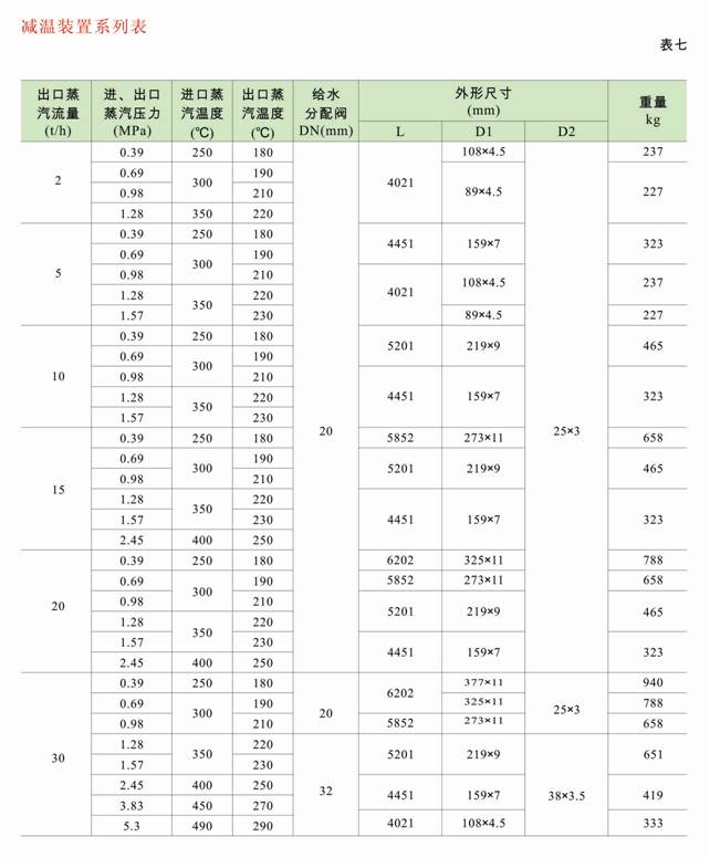 產品名稱、蒸汽流量(進口或出口流量)、進口蒸氣壓力(P1)、溫度(t1)、出口蒸汽壓力(P2)、溫度(t2)、減溫水壓力(P3)、溫度(t3)(減溫水壓力應高于出口蒸汽壓力1MPa)。